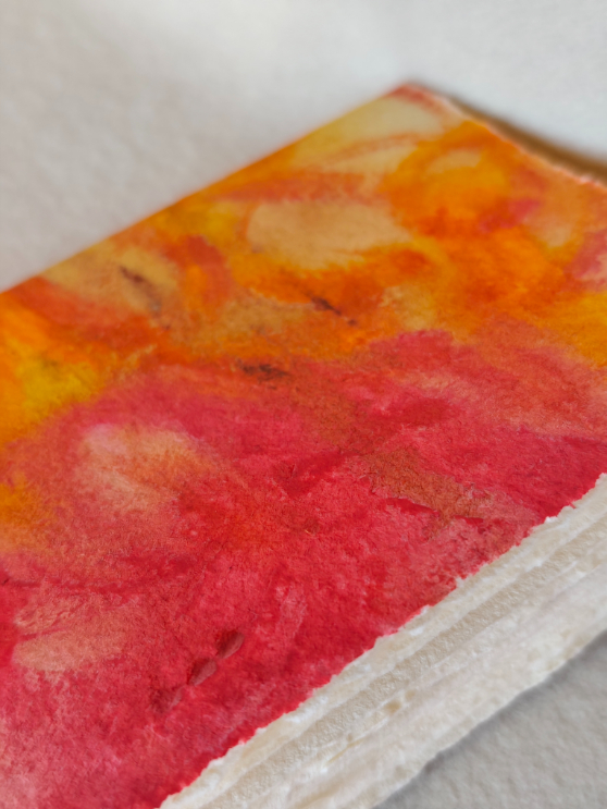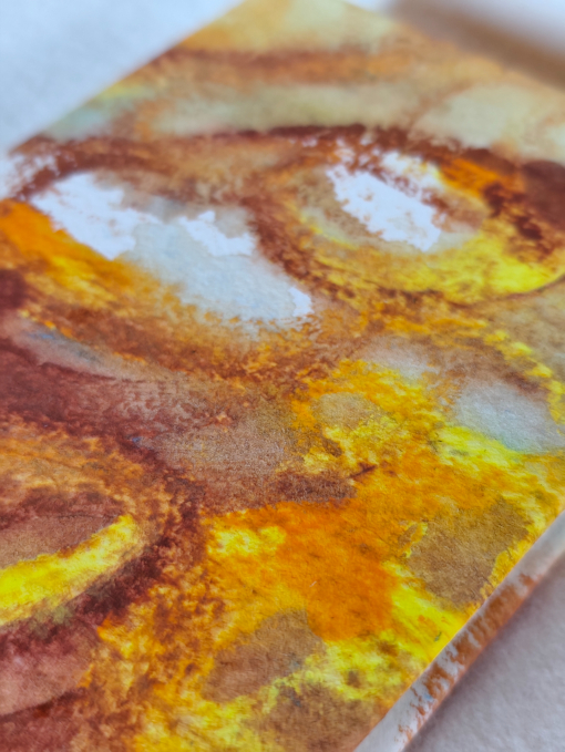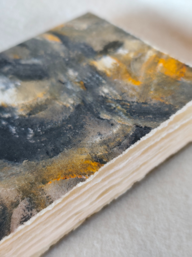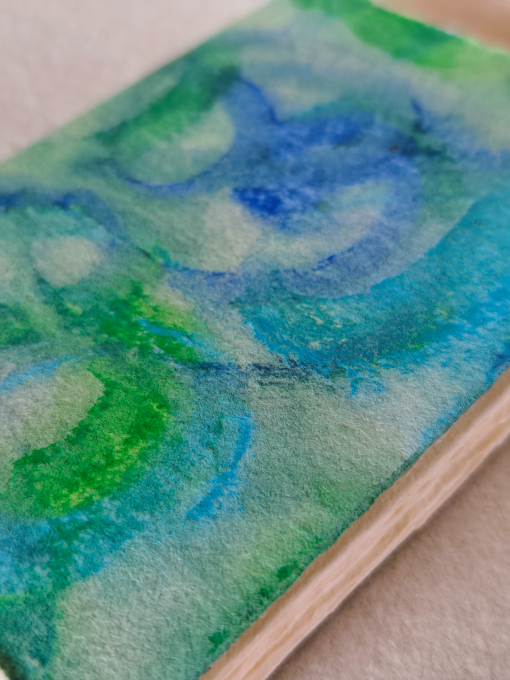 Libretto formato A6, rilegato a filo refe. Interno carta fatta a mano di Fabriano, 100% cotone, spessore 140gr. Cover morbida di carta dipinta a mano, tema astratto. Ideali per scrittura, disegno e sketch di acquarello.